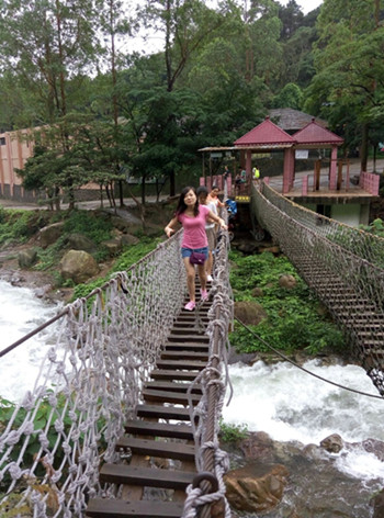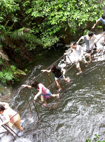 某些女生一馬當(dāng)先,搶在前面,讓同行的男生也為之汗顏。在這條探險(xiǎn)的路上,水潭瀑布、鐵索云梯、浮橋石丘接連不斷,樹(shù)木蒼翠蔥綠,風(fēng)景秀美。果真是不虛此行。無(wú)論平時(shí)是喜歡安靜的還是活潑的,在野外則充分展現(xiàn)了大家火力全開(kāi)的精神風(fēng)貌。不僅增加的了大家之間的互相了解,更展現(xiàn)了大家團(tuán)結(jié)一心的企業(yè)凝聚力。