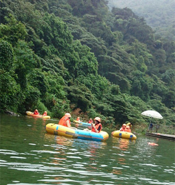 探險(xiǎn)結(jié)束之后,下午則是令人期待的漂流。不過(guò)很遺憾并沒(méi)有全員一起漂流,有一些人沒(méi)有過(guò)去。我們?cè)谏焦鹊纳嫌蔚巧掀澩?,每一組男女搭配。不過(guò)有些不愿意同男生一起戲水的女生就自己組隊(duì),不過(guò)在后來(lái)的陌生人水戰(zhàn)中被噴的挺慘。宋導(dǎo)倒是樂(lè)意做一個(gè)合格的觀眾。不過(guò)看到有些人被“敵人”攻擊的太慘,宋導(dǎo)也看不下去,于是并不吝嗇教她們左邊劃幾下,右邊劃幾下,把皮劃艇劃走,否則誰(shuí)也不知道她們要怎么從角落里面出來(lái)。
