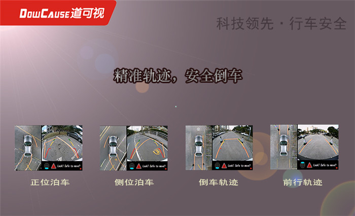 道可視360全景影像系統(tǒng)通過前后左右的四路攝像頭采集四周圖像,經(jīng)過無縫拼接后在原車屏實時形成360度全景俯視圖和前后左右的單視圖。車主可以清晰直觀的掌握周邊路況,不留一線視野盲區(qū),將一切盲區(qū)交通事故扼殺在發(fā)生之前。