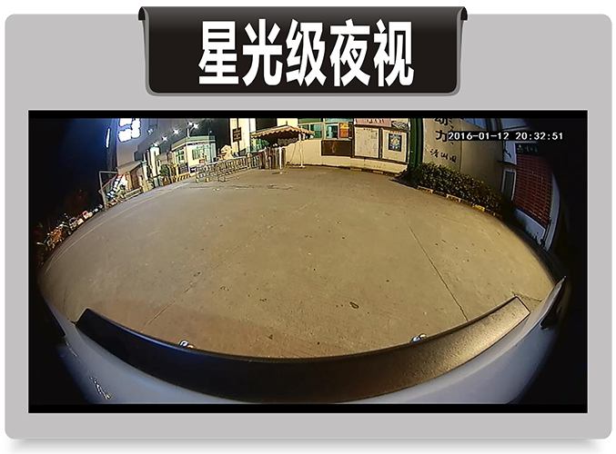 道可視全景采用新的圖像感光技術,專利夜視效果算法。夜晚,在增強夜視算法,大光圈及噪波濾除等技術的支持下,即使只有星光的條件下,也能利用夜視功能,安全的將車輛停車入庫,泊車入位。