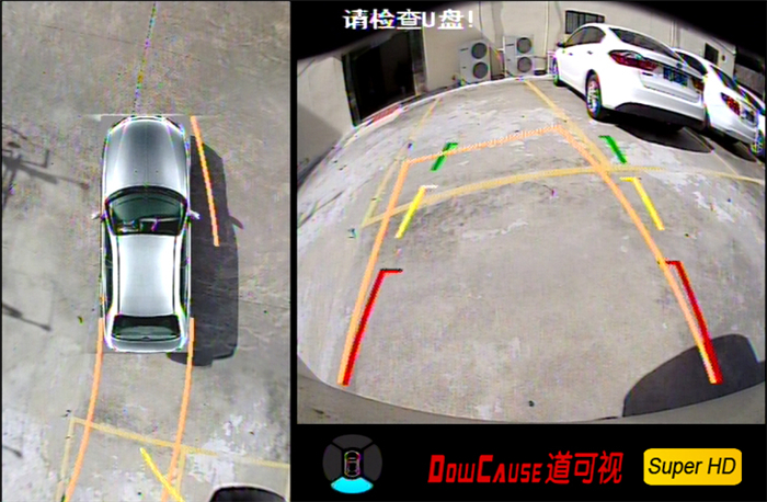 深圳道可視科技有限公司隆重推出帶??柯费?、窄路限寬和打轉(zhuǎn)向過障礙模式等在內(nèi)的360°全景行車輔助系統(tǒng),是目前市場上實(shí)用的全景產(chǎn)品。該系統(tǒng)可以讓司機(jī)直接在中控顯示器上直接地了解車身四周環(huán)境,新手倒車無憂。