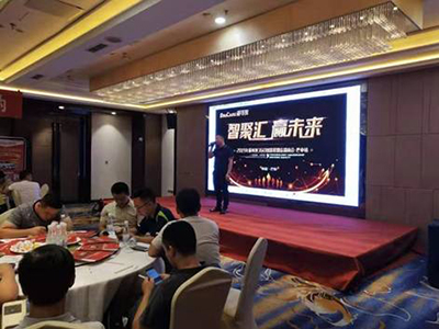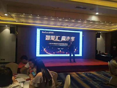 隨后,道可視大區(qū)經理陶佩上臺,陶佩經理重點針對現(xiàn)場眾來賓普遍關心的智慧聯(lián)盟店招商政策做了細致化的講解。