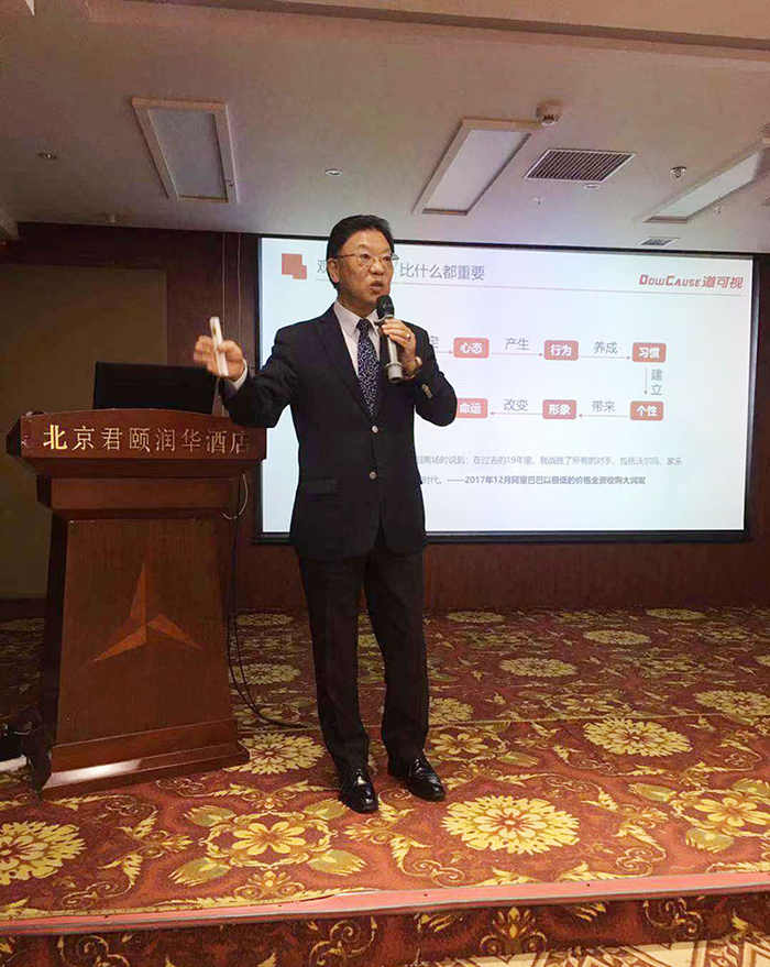 會議伊始,道可視代理商王總率先上臺致辭,王總對于現(xiàn)場來賓的蒞臨表示熱烈的歡迎,王總指出,在如今這樣一個(gè)競爭激烈的市場環(huán)境,傳統(tǒng)門店正面臨著嚴(yán)峻考驗(yàn),門店早已不是單打獨(dú)斗,不僅僅只是單純的賣貨,還需要具備一定的核心的競爭力和周到的服務(wù)。